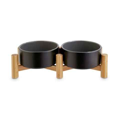 FT05 Wholesale Elevated Ceramic Cat Bowls with Bamboo Stand Double Feeding Station for Indoor Cats