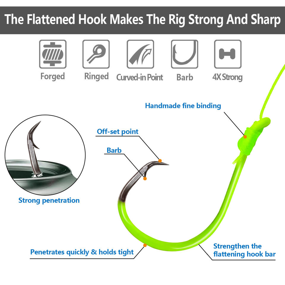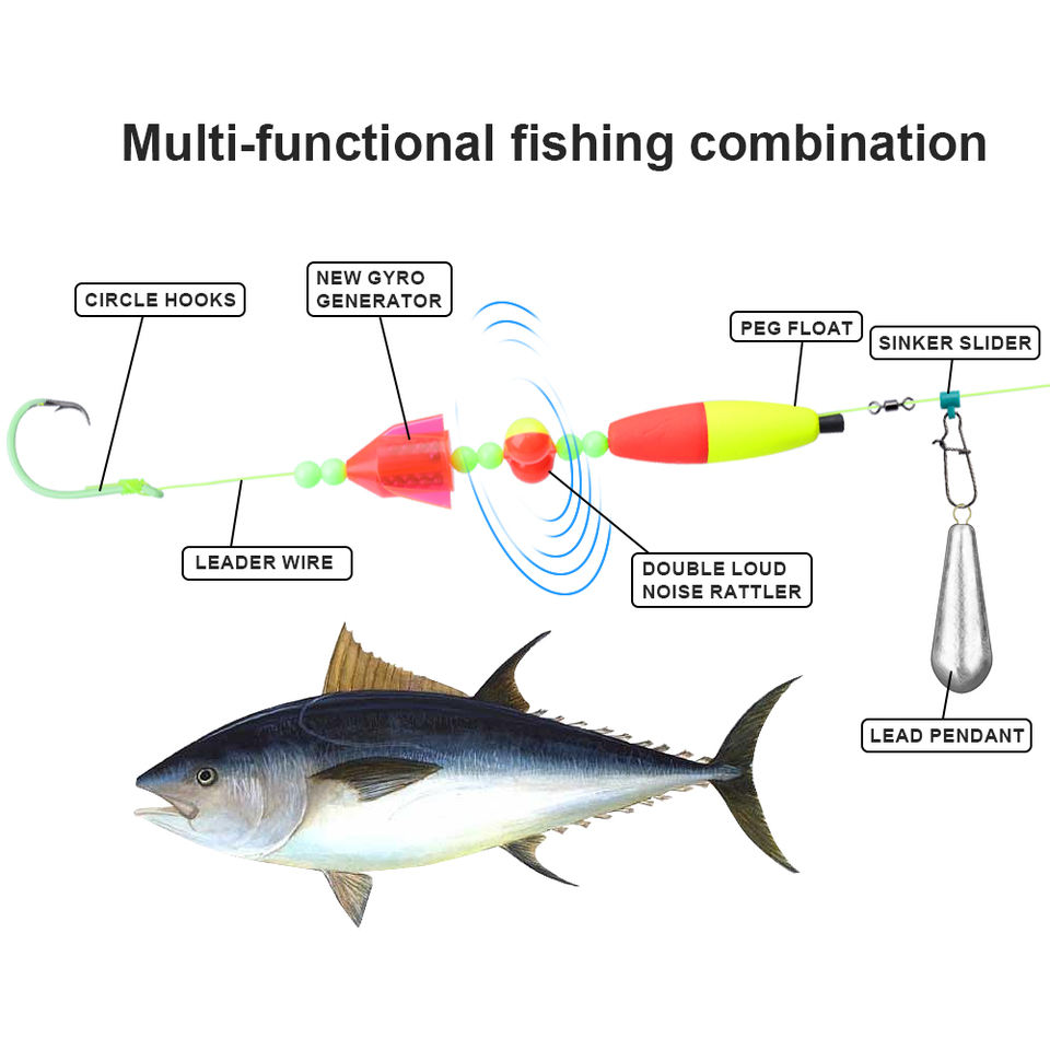 FTK Montages flottants pour poisson-chat avec sonnette, queue longue, tailles 6-0/8-0/10-0, 18-22cm, pour la pêche en bateau en mer