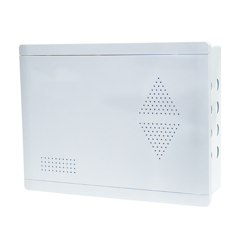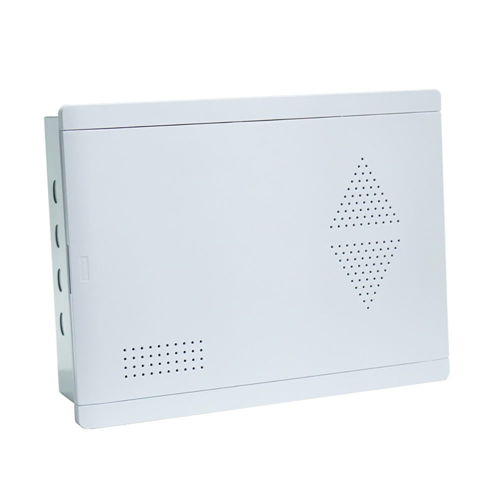 Boîtier d'entrée de maison FTTH, boîtier de câblage en acier, montage mural encastré, panneau en plastique et en fer, armoire multimédia intérieure personnalisable