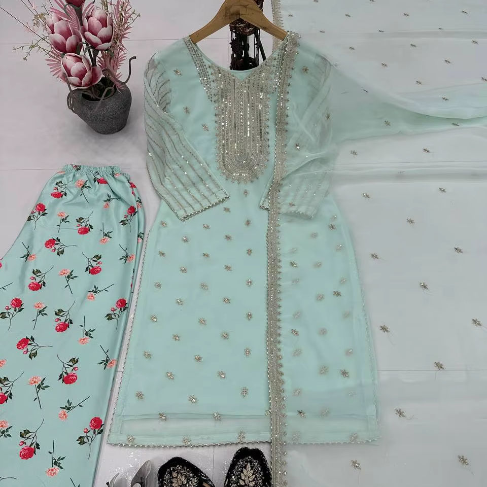 DUPATTA WORK:FULL EMBROIDERED SEQUENCE WORK WITH FANCY LACE