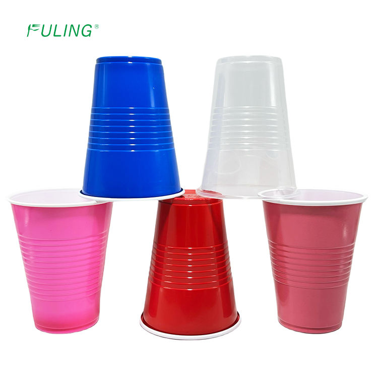 Gobelets jetables FULING en PP personnalisés de 7 oz, gobelets en plastique jetables pour fêtes, rouge, blanc, bleu, gobelets à bière