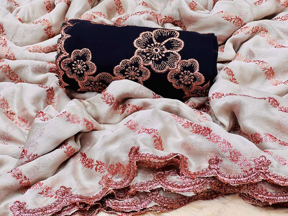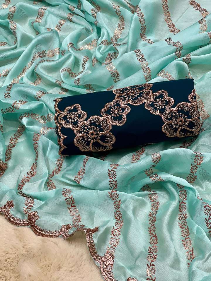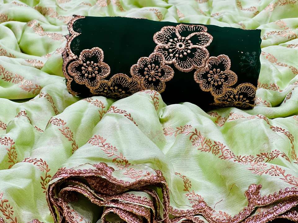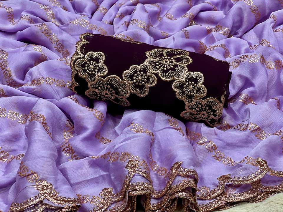 Work:panchuri moss chiffon cutwork border & designer blouse