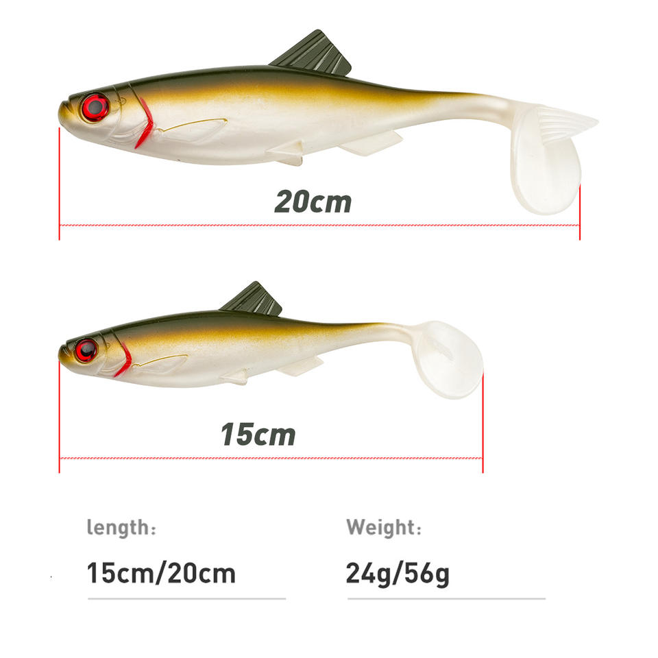 FUN Leurre souple artificiel en acier inoxydable imprimé en forme de queue en T, 15cm/20cm, pour la pêche en mer sans hameçons, pour le bar