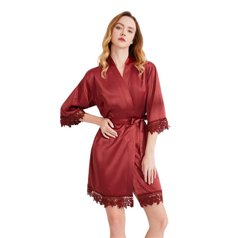 FUNG 3031 Luxe Satin Soie Robe Femmes Mariée Demoiselle D'honneur Nuit Cultivé Fête De Mariage Femmes Vêtements De Nuit Robe Du Matin