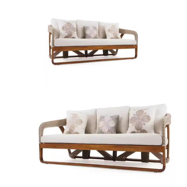 Canapé de patio 3 places en bois d'acacia massif avec coussin Canapés de jardin Produit