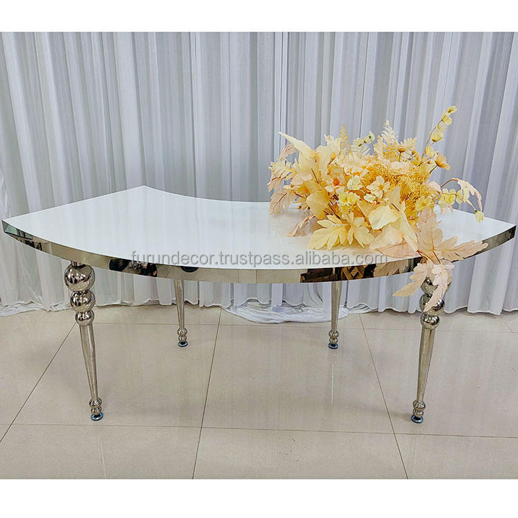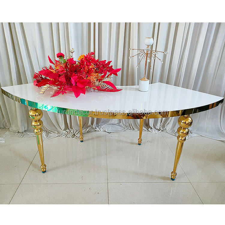 Table Ronde de Mariage FURUN en Acier Inoxydable Simple avec Pieds Dorés et Plateau Blanc, Grande Assemblage pour Décoration de Mariage, Vente en Gros