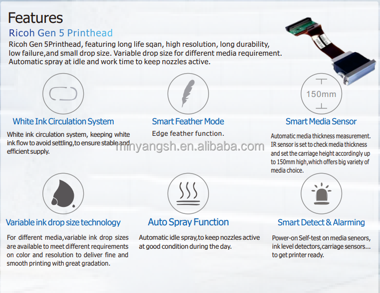 Tête d'impression:Max 9 pcs Ricoh Gen G5
