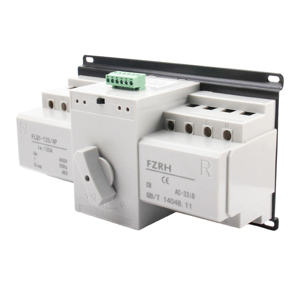 Interrupteur de transfert automatique double alimentation FZRH Mini 50Hz/60Hz AC220V 63A 2P Monophasé 10kA Capacité de coupure FLQ1-63 Solaire Photovoltaïque 400V