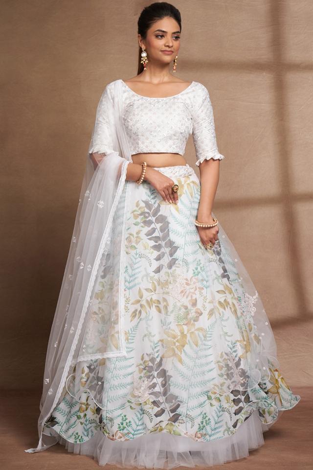 Dernier Designer Organza Soie Saree Party Wear Lehenga Choli avec Séquence Fil Travail Salwar Kameez de Fab Zone