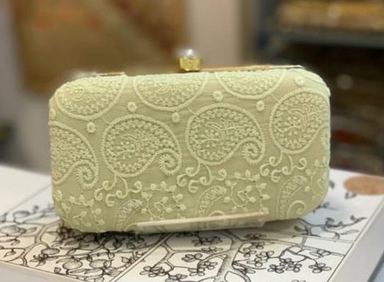 Pochette de boîte en tissu pour femmes, pochette de quatre couleurs, en Chikankari, mode M, création
