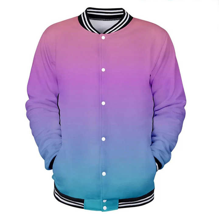 Veste universitaire personnalisée pour homme Fabric Studio, dégradé de couleurs, coupe slim, col montant, logo frontal, fermeture éclair, respirante, écologique