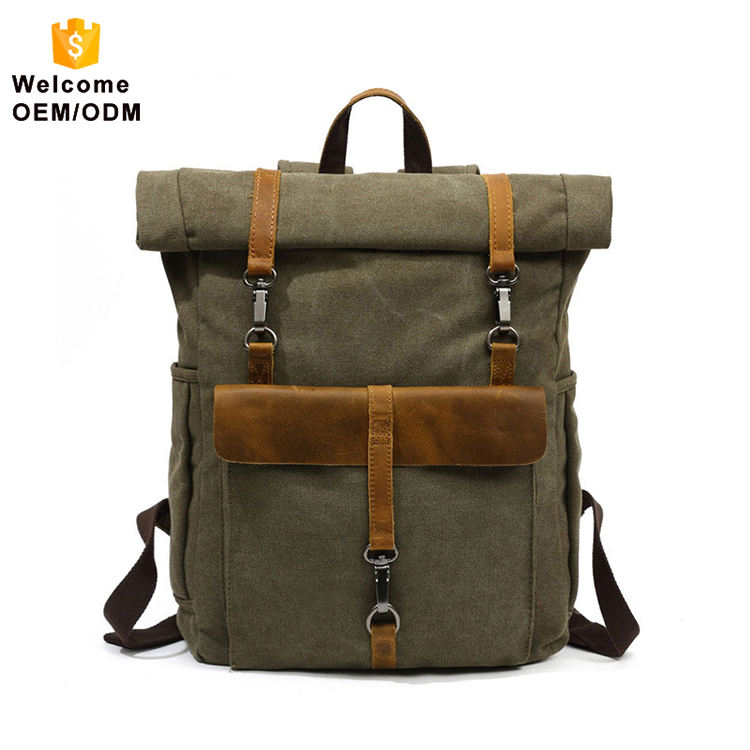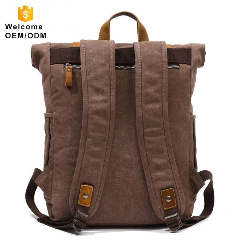 Fabricant Fournir Rouleau Top Vintage Toile Sac À Dos Pour Ordinateur Portable