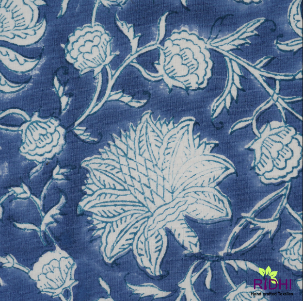 Fabricrush High Hand Block Printed Cotton Napkins Beautifully Designed Prussian Blue White Floral Embroidered Dinner Napkins