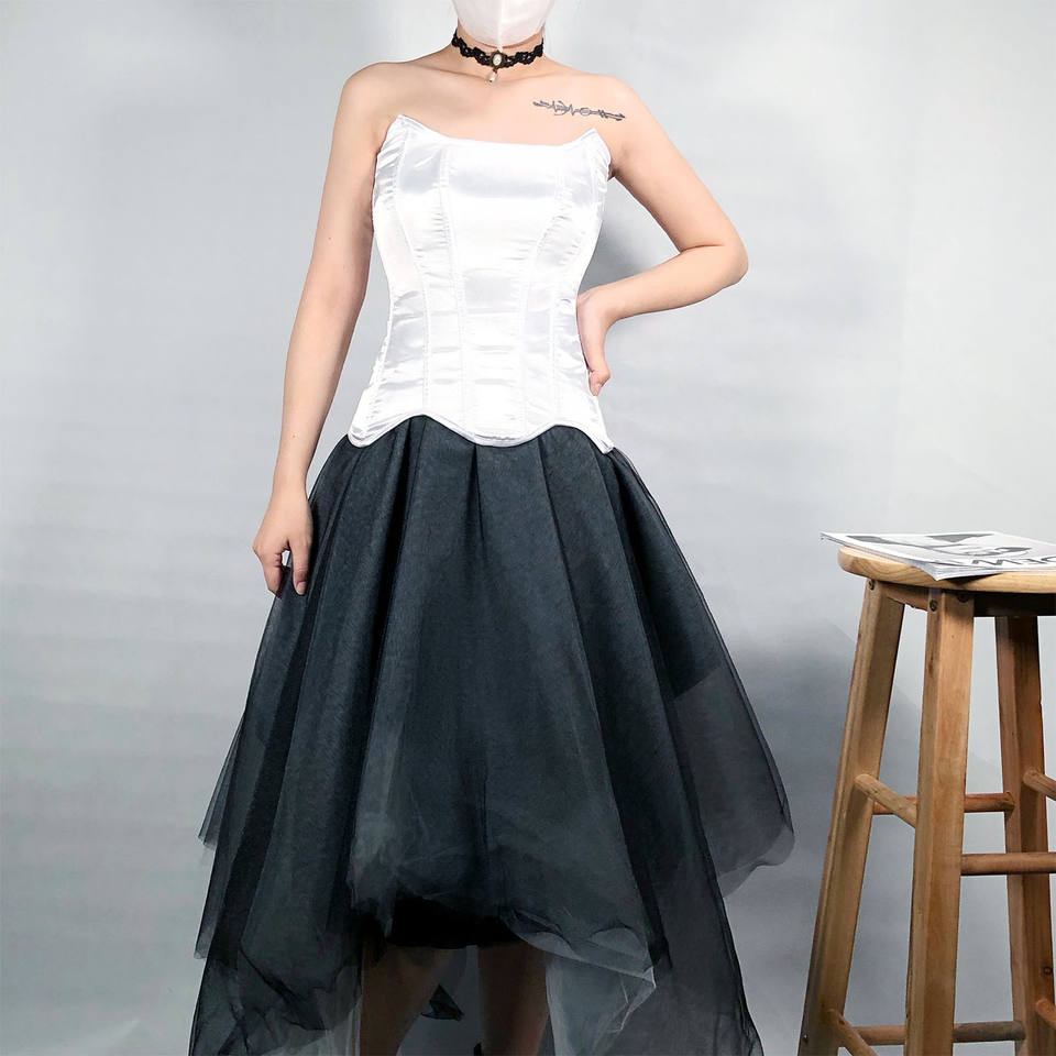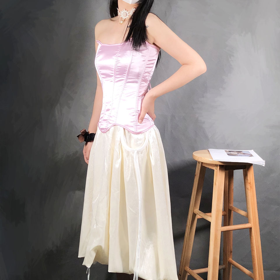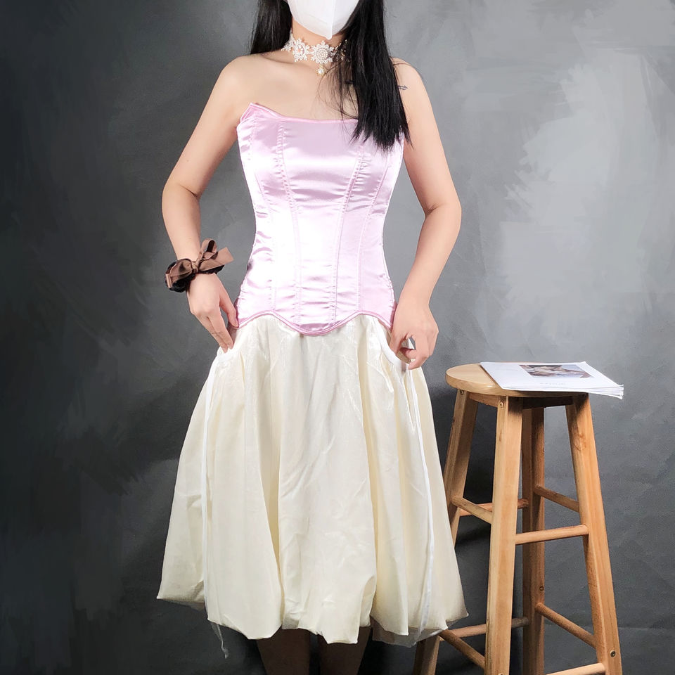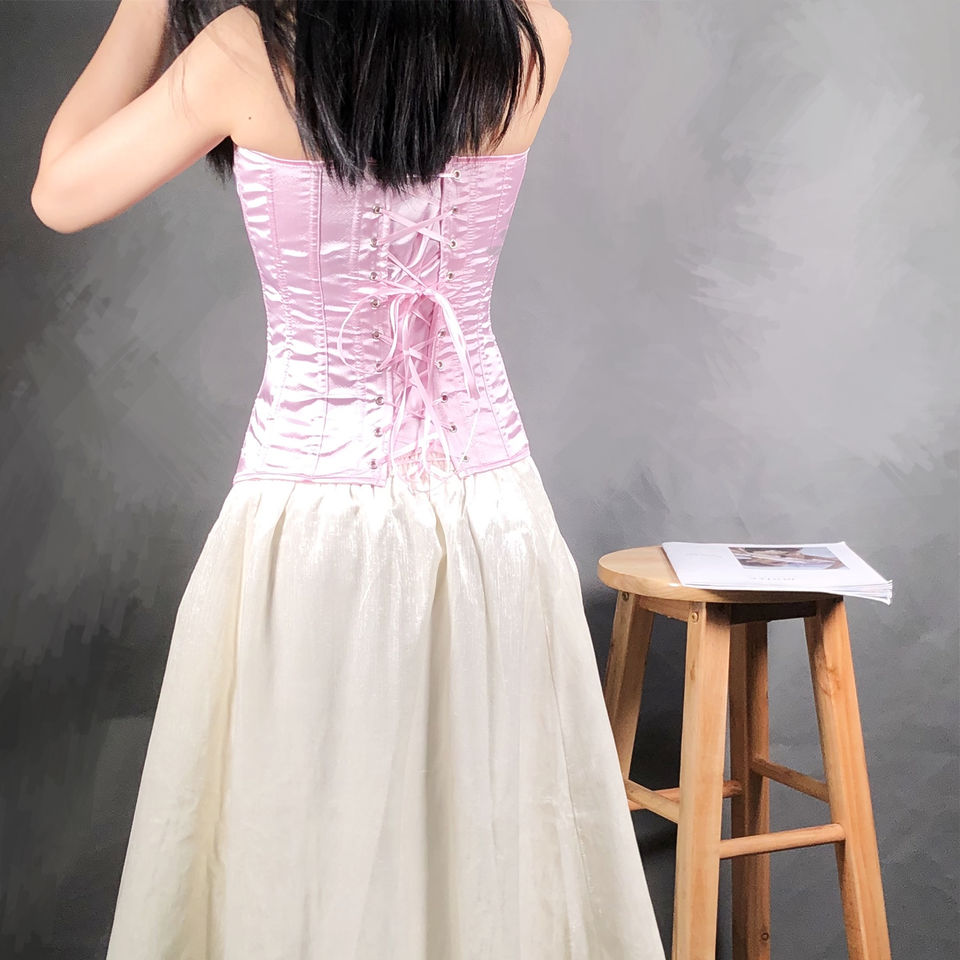 Fabuleux classique Overbust Corset avec os en plastique Soutient la colonne vertébrale sans jupe Grace Satin Tube Top Body shaper