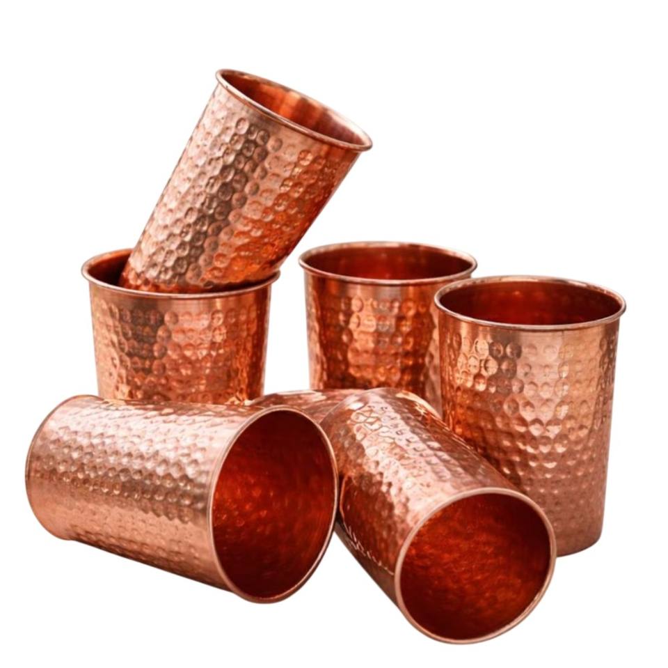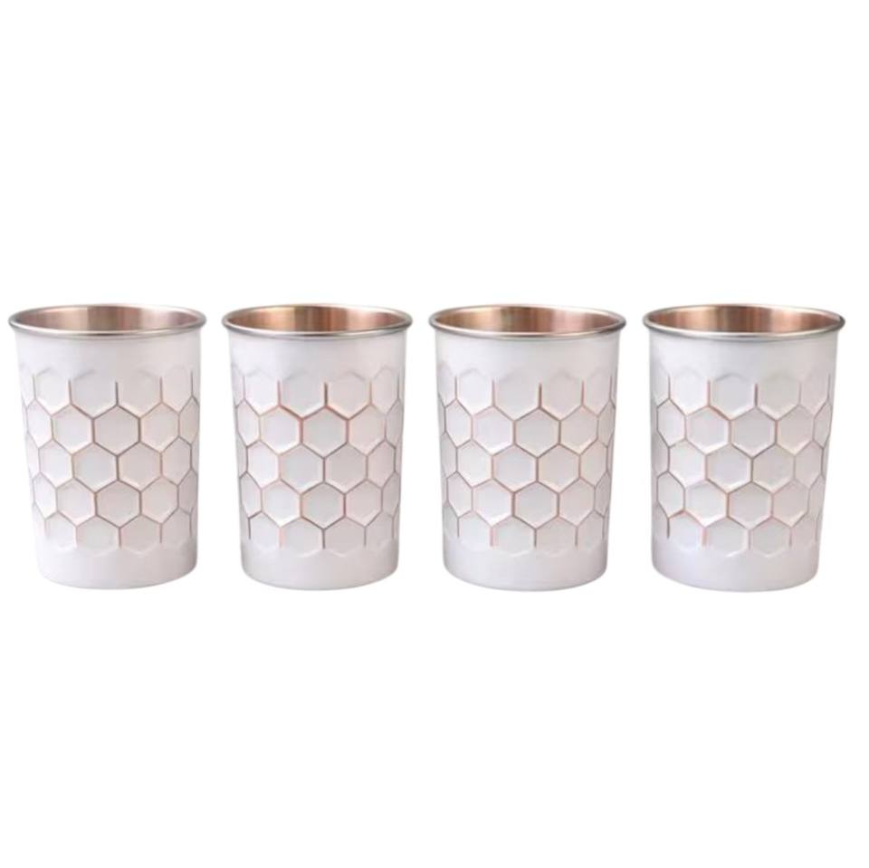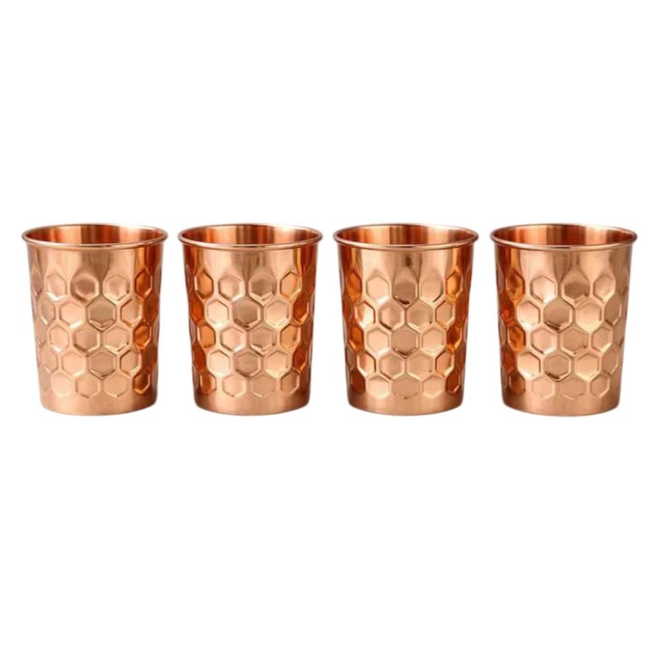 Ensemble de 4 verres à eau de mariage en cuivre pur, design fabuleux, écologiques, faits à la main, martelés à coupe diamantée, pour la maison et la cuisine
