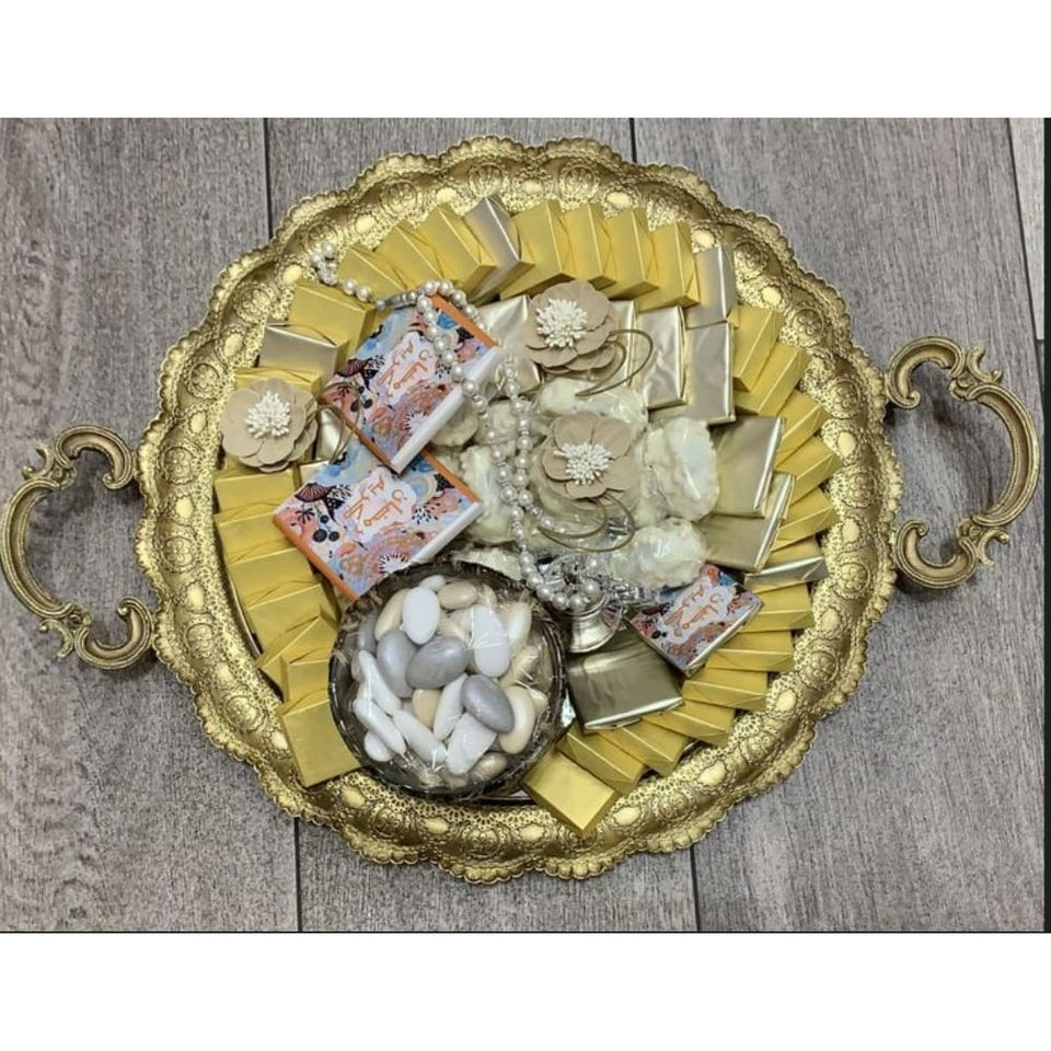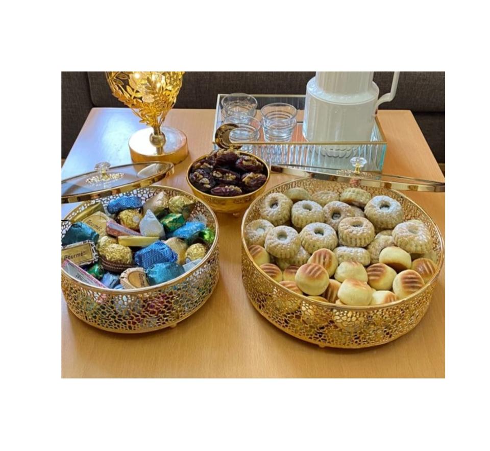 Fabuleux bol de service décoratif en chocolat doré de table design en métal bonbons au chocolat et plateaux de serveur de dattes