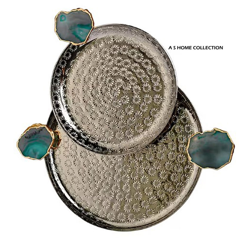 Plateau de service pour thé et café au design fabuleux en aluminium martelé, plateau de service pour desserts pour la maison, utilisation de la vaisselle