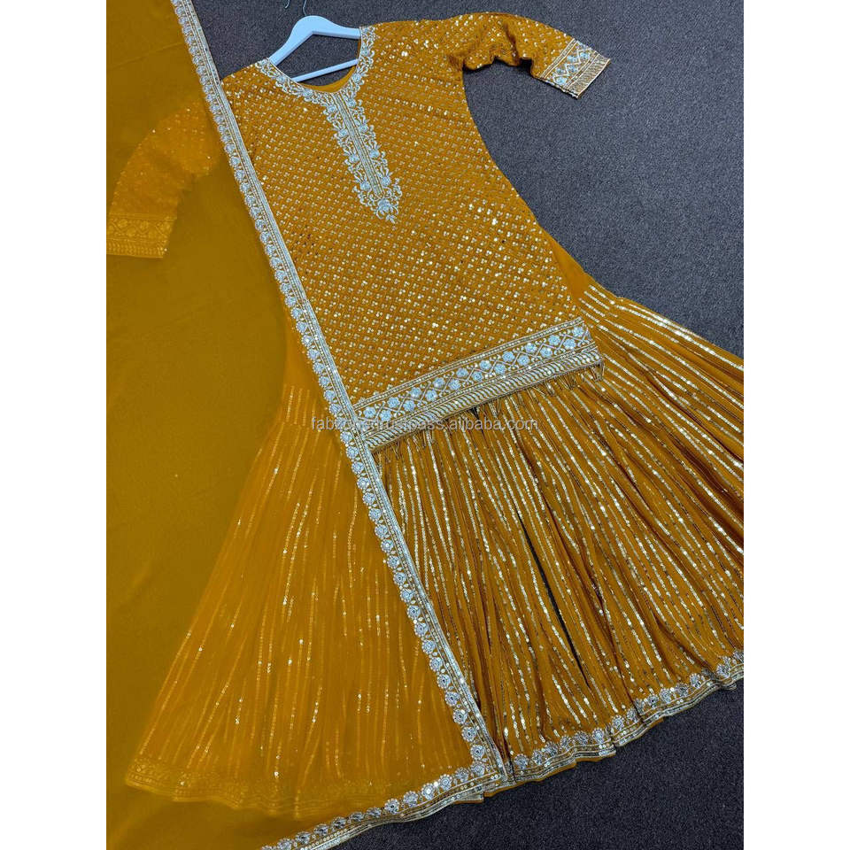 Fabzonefabindia présentant la nouvelle fête était belle broderie lourde fantaisie et haut de travail à paillettes de 5mm-Sharara avec Dupatta