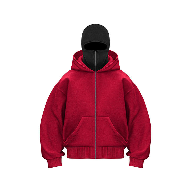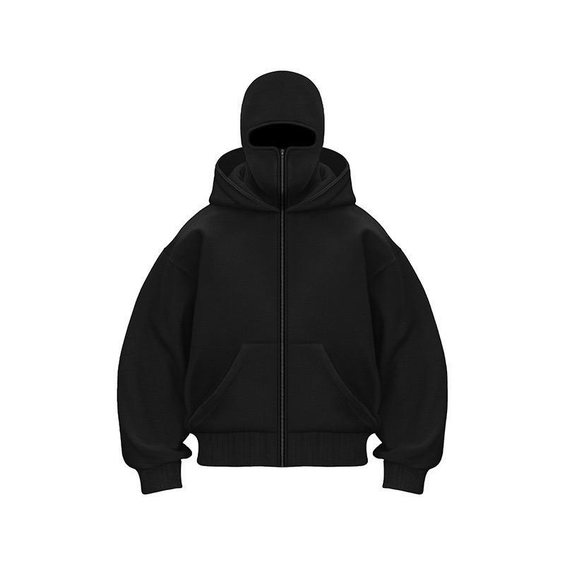 Sweat à capuche zippé pour homme, coupe intégrale, en coton lavé pastel, grammage lourd 500 g/m², avec masque intégré (type cagoule)
