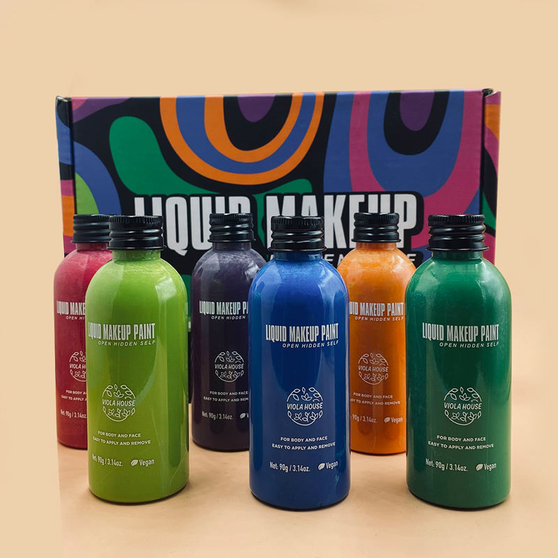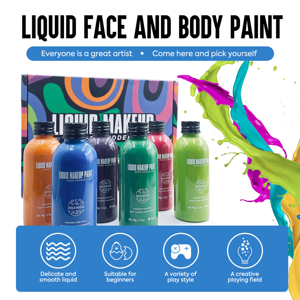 Kit de peinture faciale Peinture liquide 90ml 6 couleurs Peinture faciale organique sans cruauté pour le maquillage d'Halloween ou les fêtes