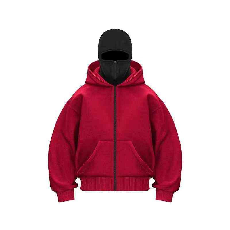Face cover hoodie with adjustable mask soft cotton fleece interior and oversized fit ideal for stylish winter street fashion