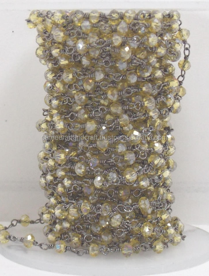 Perle enveloppée de fil de chaîne de chapelet de pierre précieuse mystique de citrine de rhodium noir à facettes avec des bijoux élégants de rondelle plaquée par or