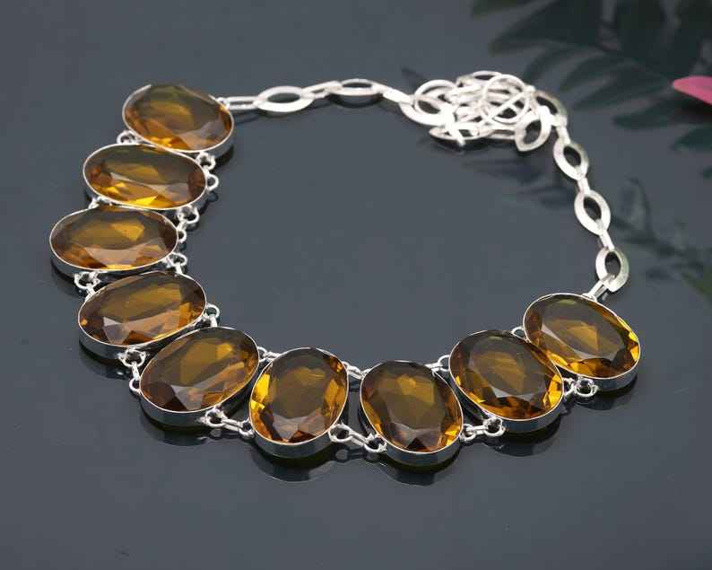 Faceted Citrine Necklace 925 Sterling Silver Oval Shape Yellow Gemstone Handmade Adjustable Chain Jewelry Gift