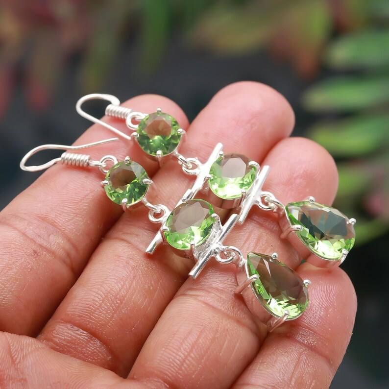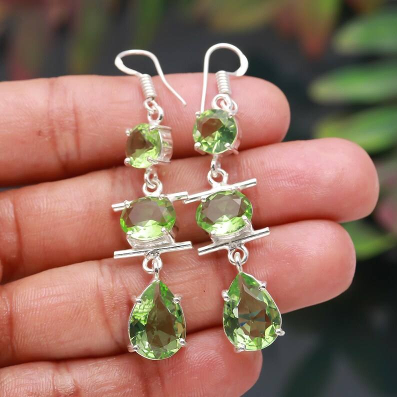 Keyword:Green Amethyst Stud With Sparkling Green Amethyst Stones