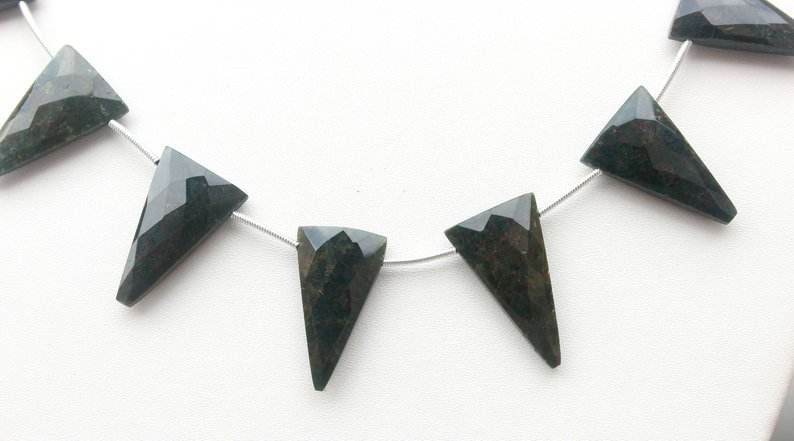 Perles de jaspe vert naturel de forme triangulaire facettée, pierres précieuses de qualité AAA certifiées par un tiers, pierres de bijoux scintillantes