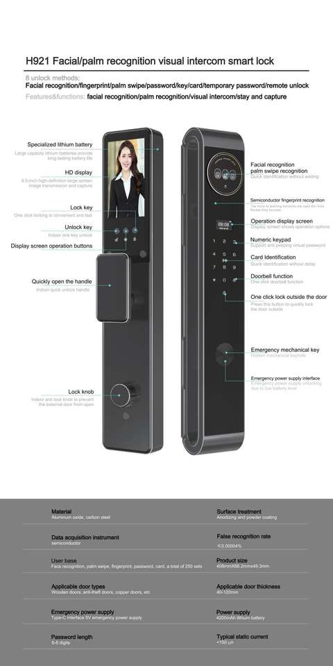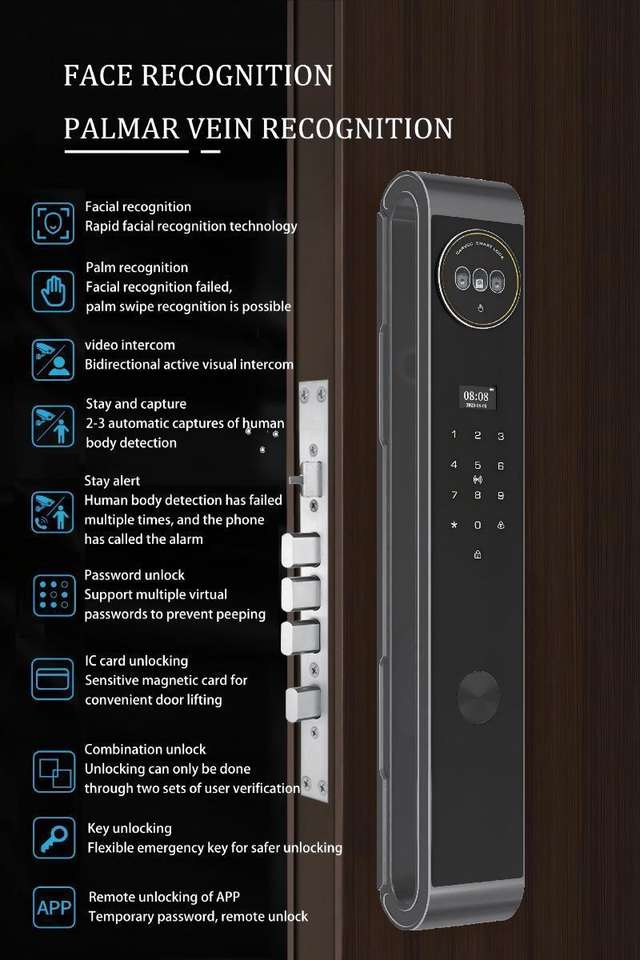 Product Name:Facial/palm swipe recognition TUYA WIFI visual intercom smart lock