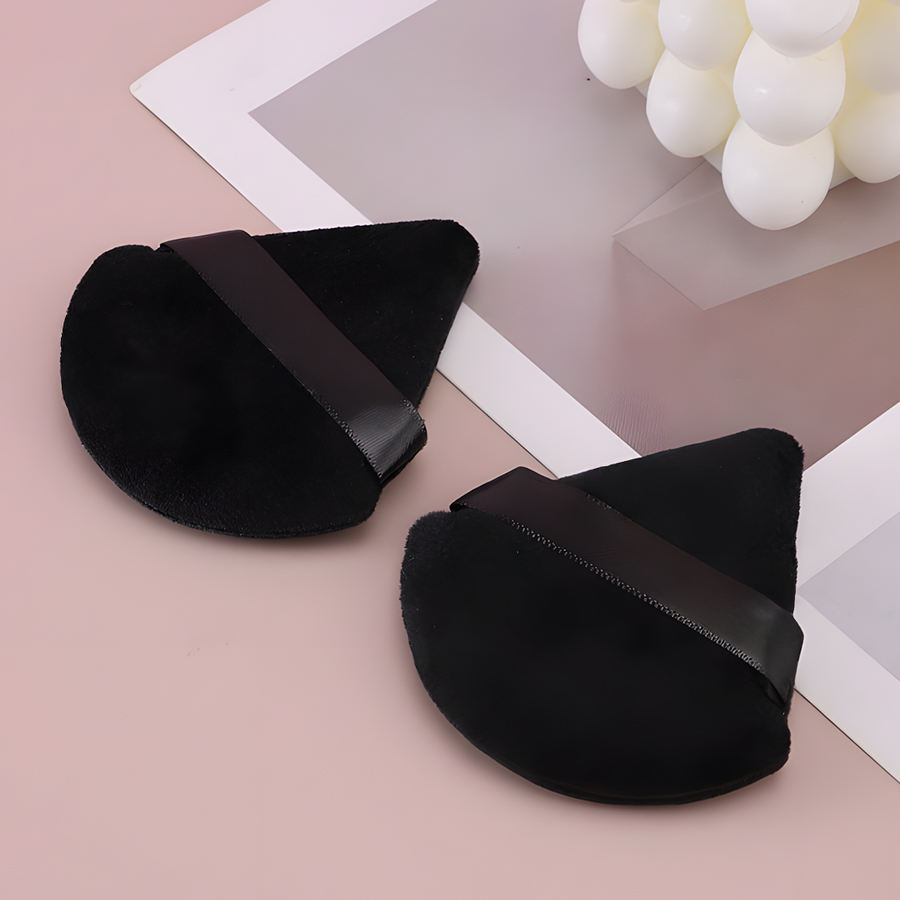 Éponge à poudre pour le visage - Super douce, lavable, utilisation humide/sèche, style sac de démaquillage, forme triangulaire coupée