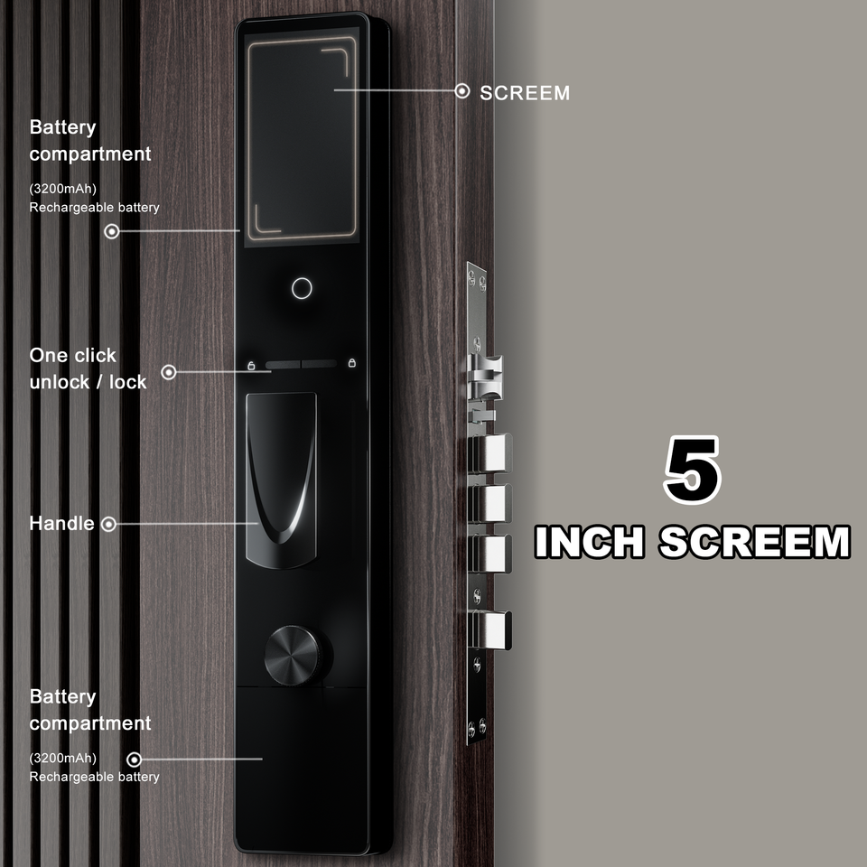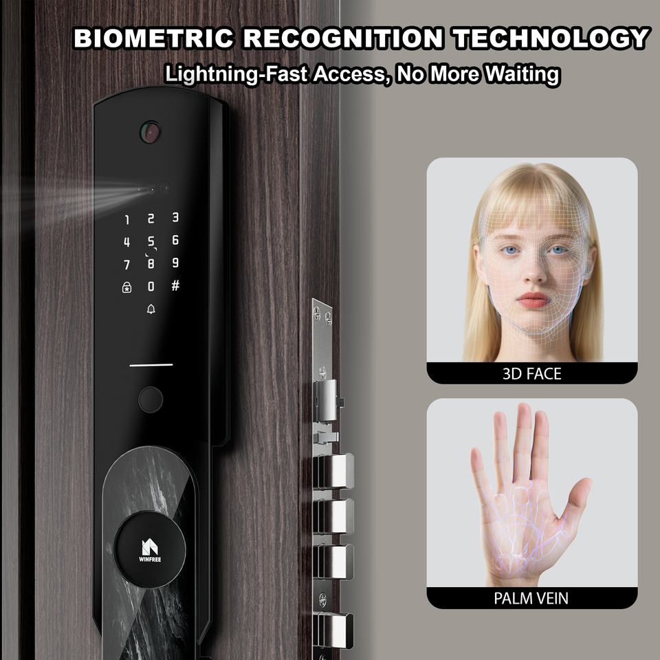 Serrure de porte intelligente à reconnaissance faciale avec entrée sans clé Wi-Fi et interphone vidéo Tuya pour la sécurité domestique