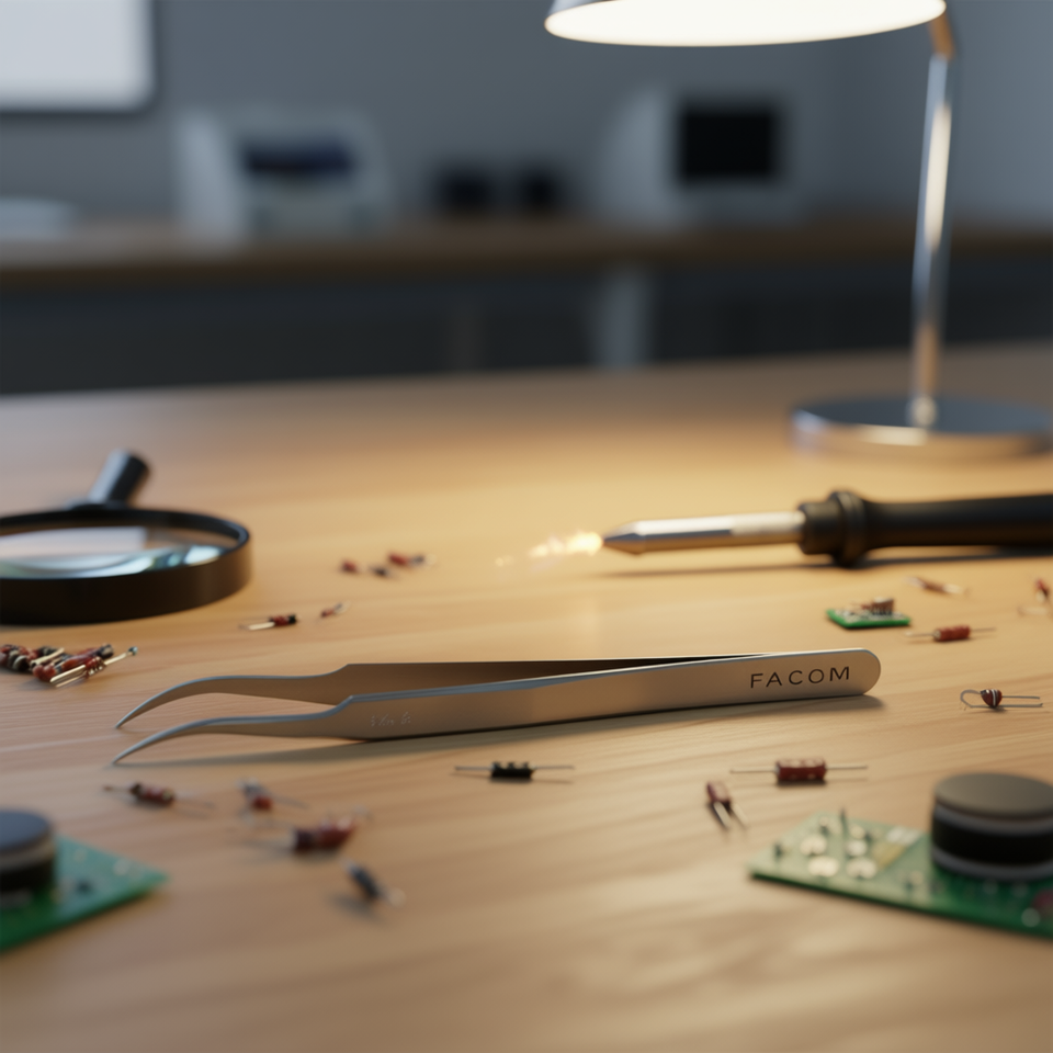 Pincettes Facom de haute précision, modèle courbé et droit