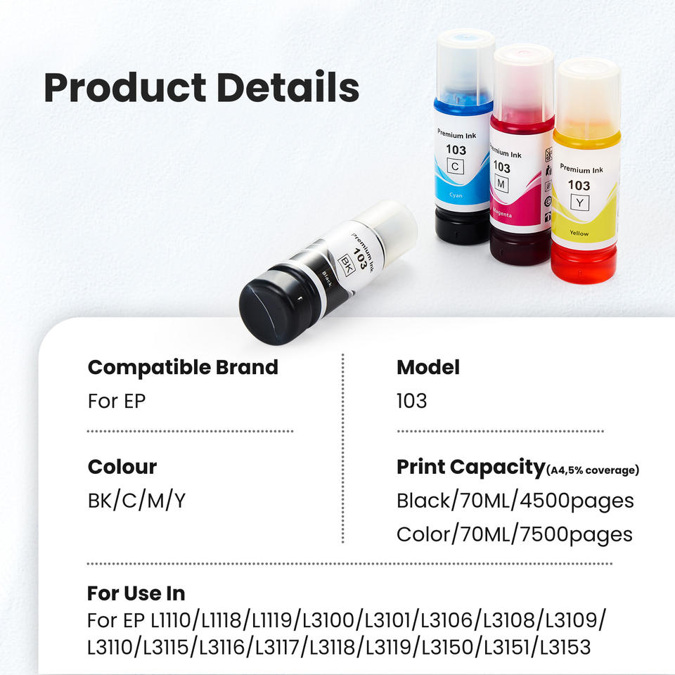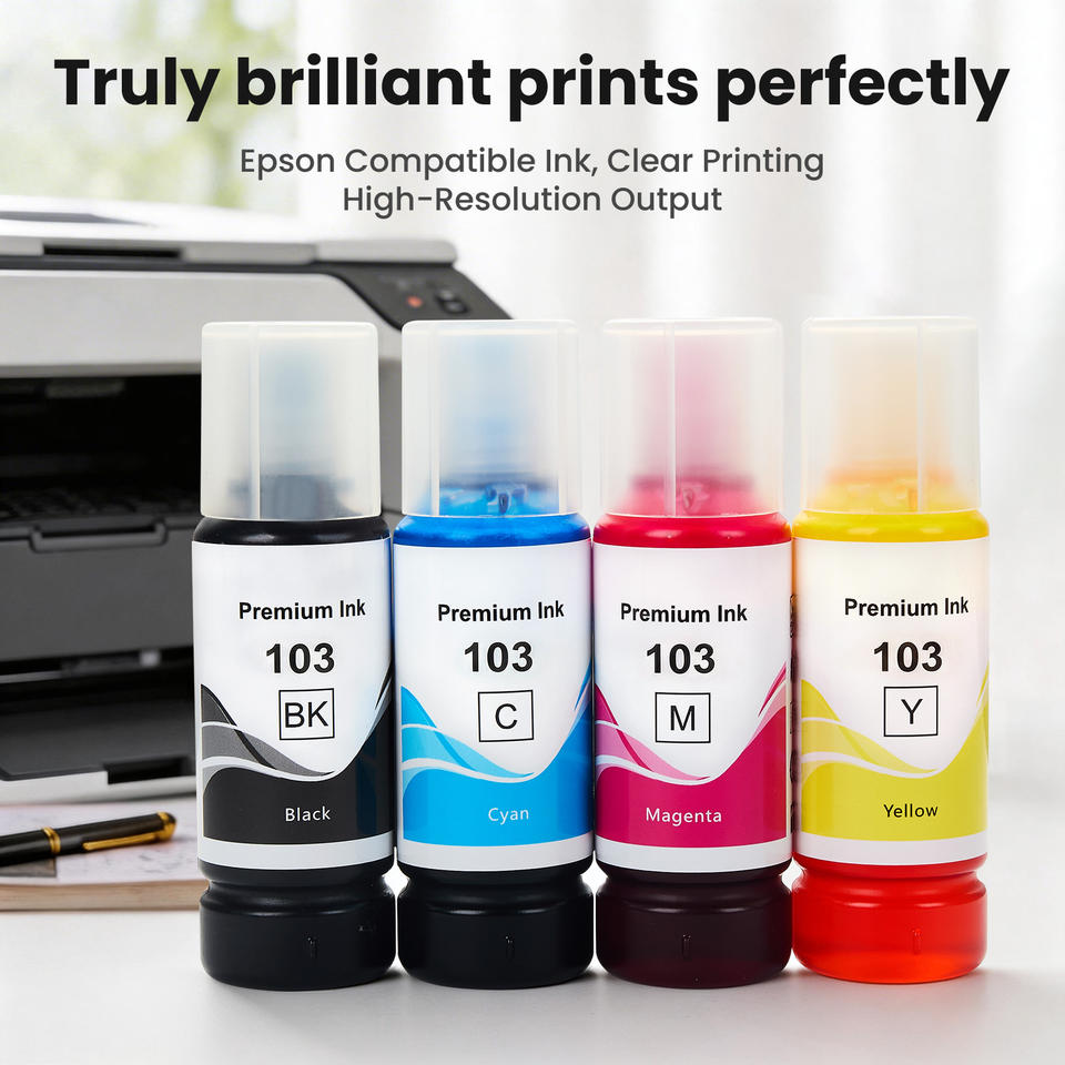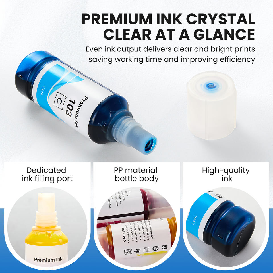 Encre de recharge en vrac compatible de qualité supérieure à base d'eau pour imprimantes de bureau EcoTank L3100 L3150 L1110 L5190 - Usine 103
