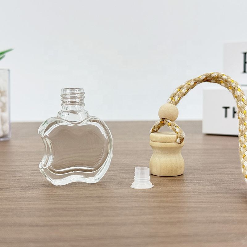 Usine 10ml clair pomme voiture parfum diffuseur désodorisant bouteille vide suspendu rituels voiture parfum bouteille avec couvercle en bois de Lotus