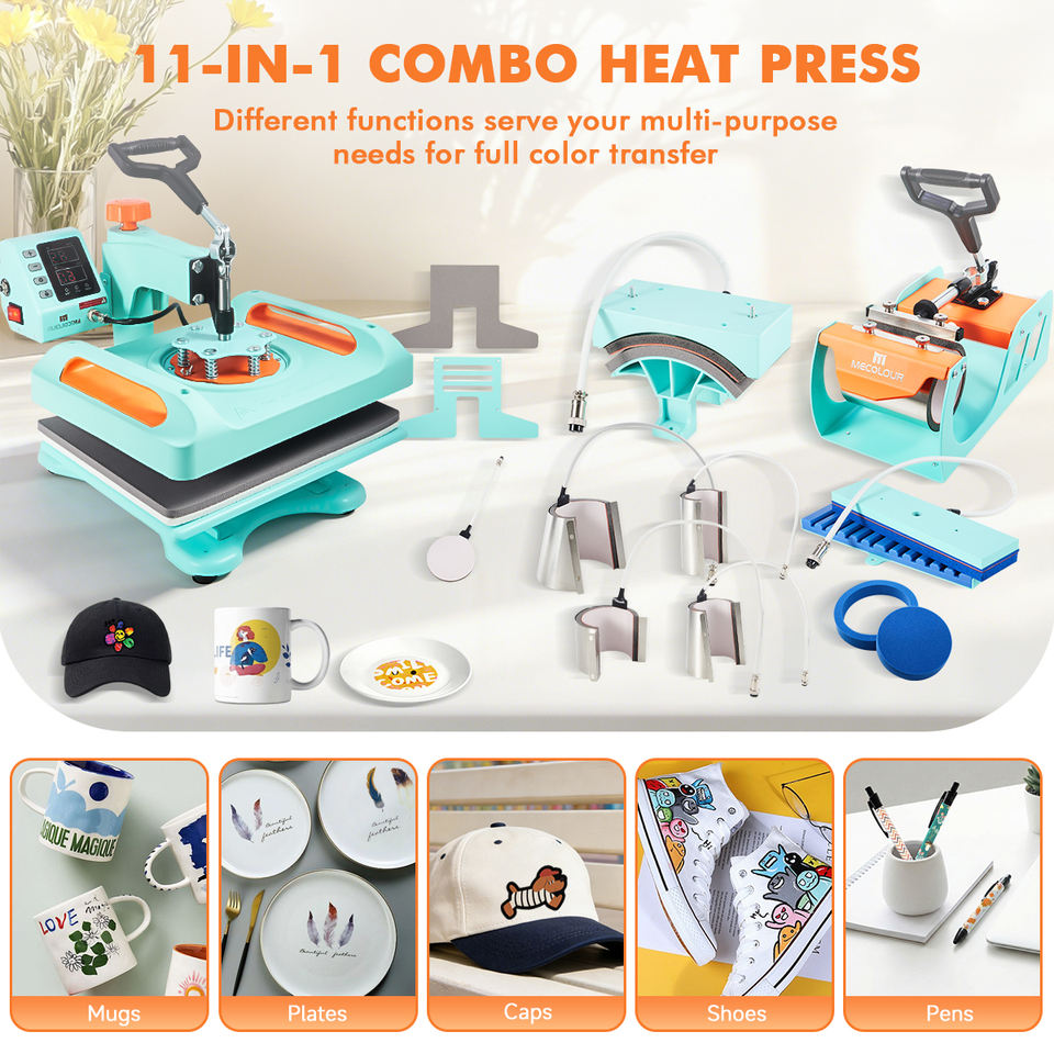 Presse à Chaud Combinée 11-en-1 pour Sublimation 29x38 pour T-shirts, Tasses, Assiettes, Casquettes, Chaussures, Stylos – Transfert Thermique