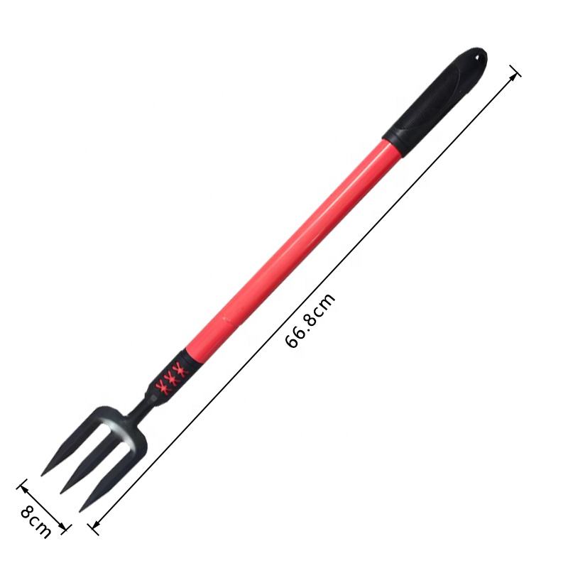 Râteau de jardin télescopique portable à 3 dents en acier au carbone pour l'agriculture