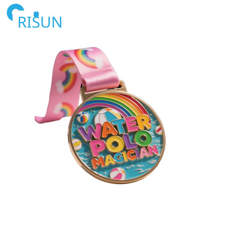 Médailles de trophée d'équipe personnalisées avec logo sur mesure, pour le jeu de lancer de ballons d'eau 3D, modèle Vega Egg Toss, avec ruban