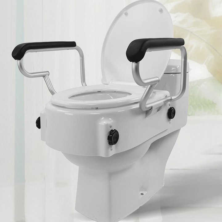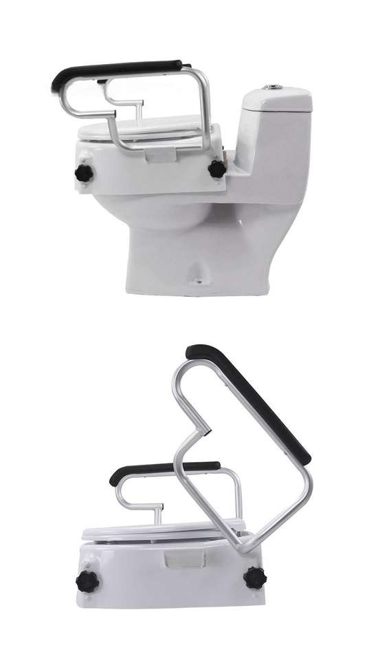 Siège de toilette surélevé de 4 pouces avec accoudoirs, siège de toilette allongé, capacité jusqu'à 299 lb, antidérapant avec poignées