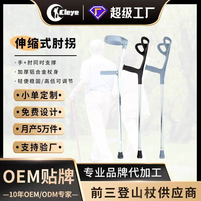 Factory Aluminum Alloy Elbow Cane F Type Telescopic Adjustable Non Slip Walking Stick 91 124cm