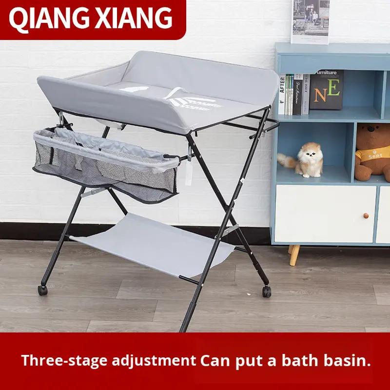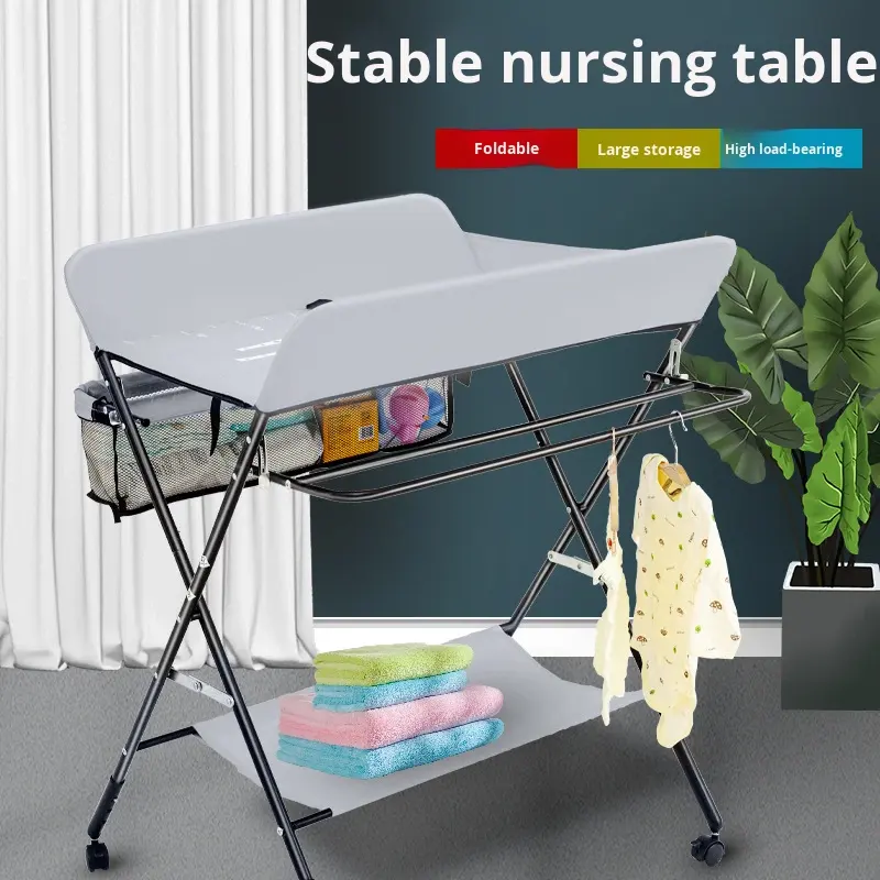 Table à langer pour bébé d'usine avec roulettes, portable, hauteur réglable, pliable, avec organisateur de crèche et étagère de rangement