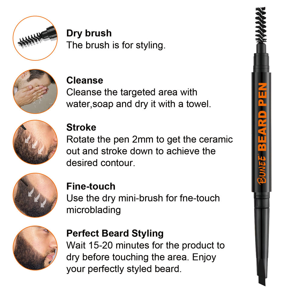 Usine meilleur stylo à barbe avec brosse étanche Lapiz Corector De Barba henné barbe colorant barbe stylo remplissage pour les soins personnels des hommes