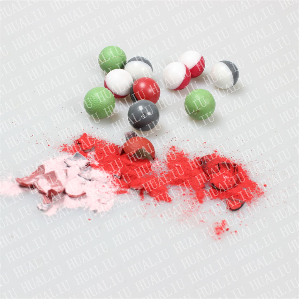Meilleure qualité colorée 043 05 068 Calibre Paintball Powder Balls Factory-Fourni pour le tir