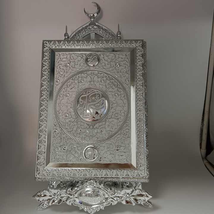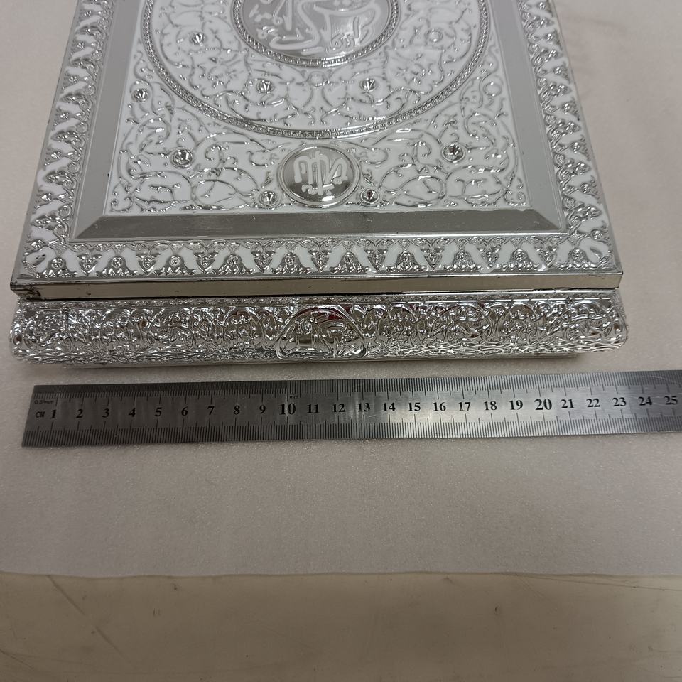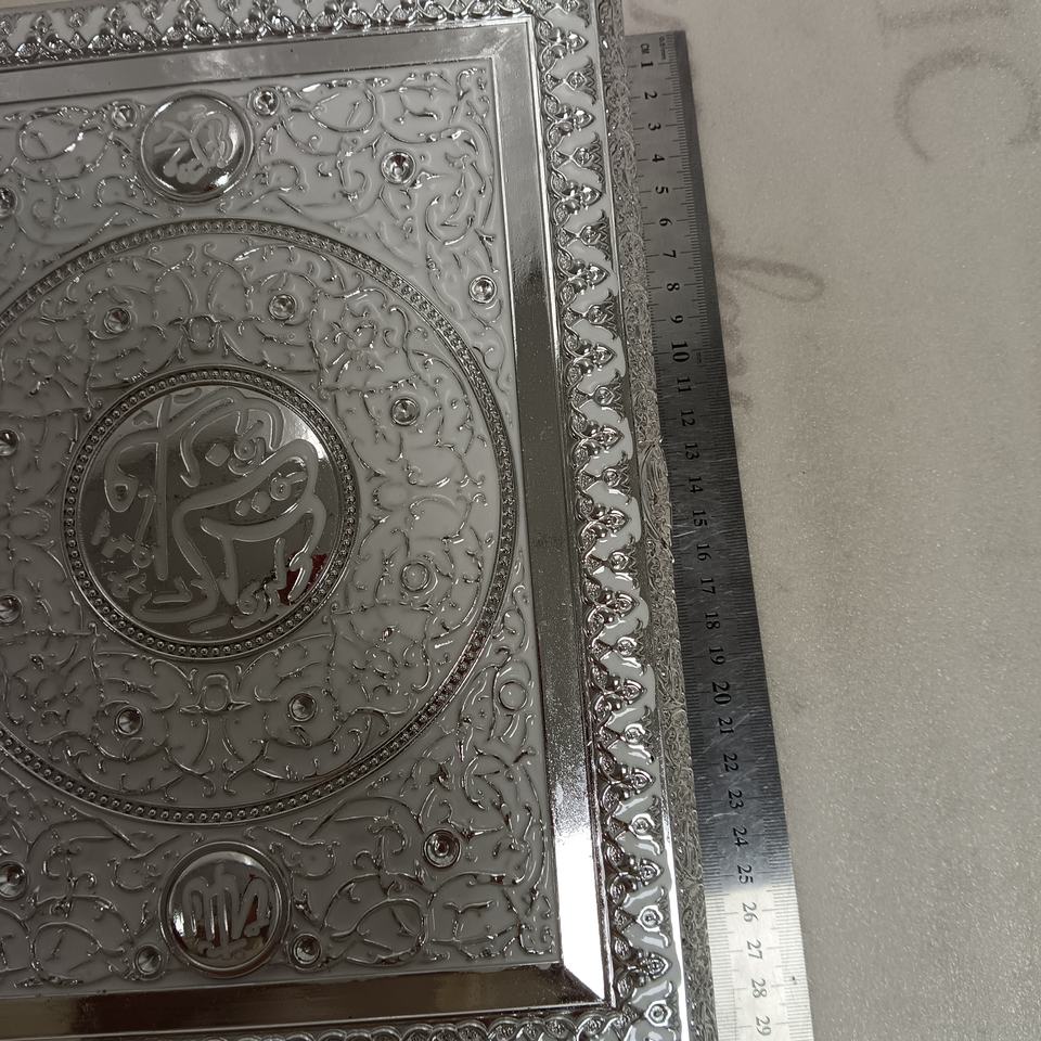 Usine Grande Taille Écriture Cadres Argent Livre Musulman Coran cas Islmaic Écriture Livre Boîte Avec Support Cadeaux Islamique
