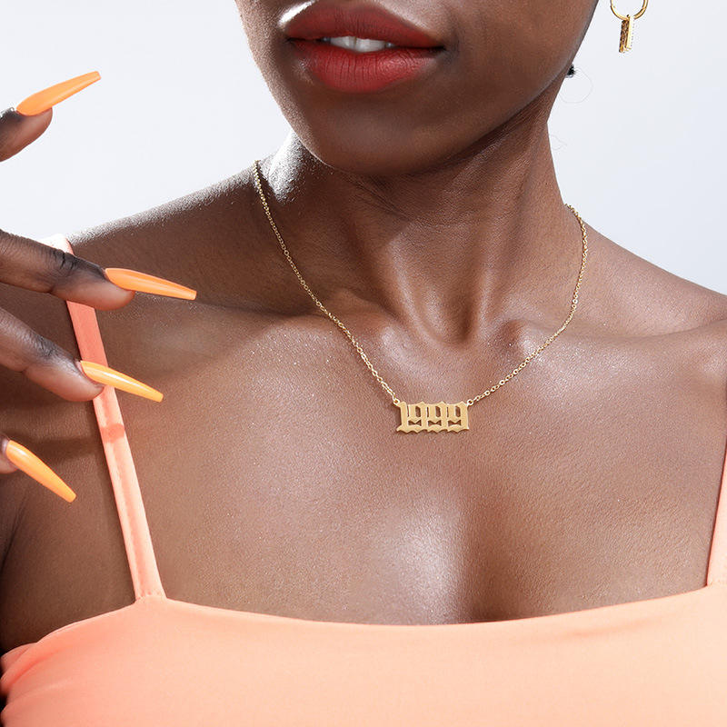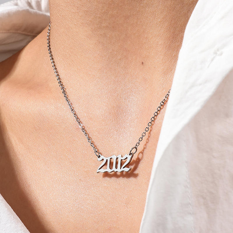 Usine Cadeau D'anniversaire En Acier Inoxydable Or 18K Année 1980 ~ 2025 Pendentif Chaîne Collier Année De Naissance Charme Collier pour Femmes