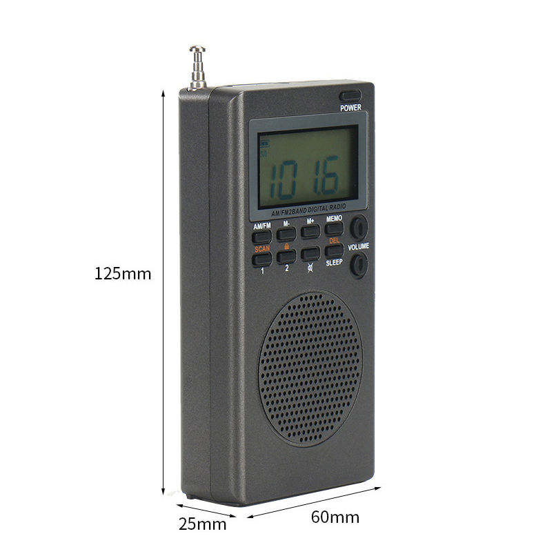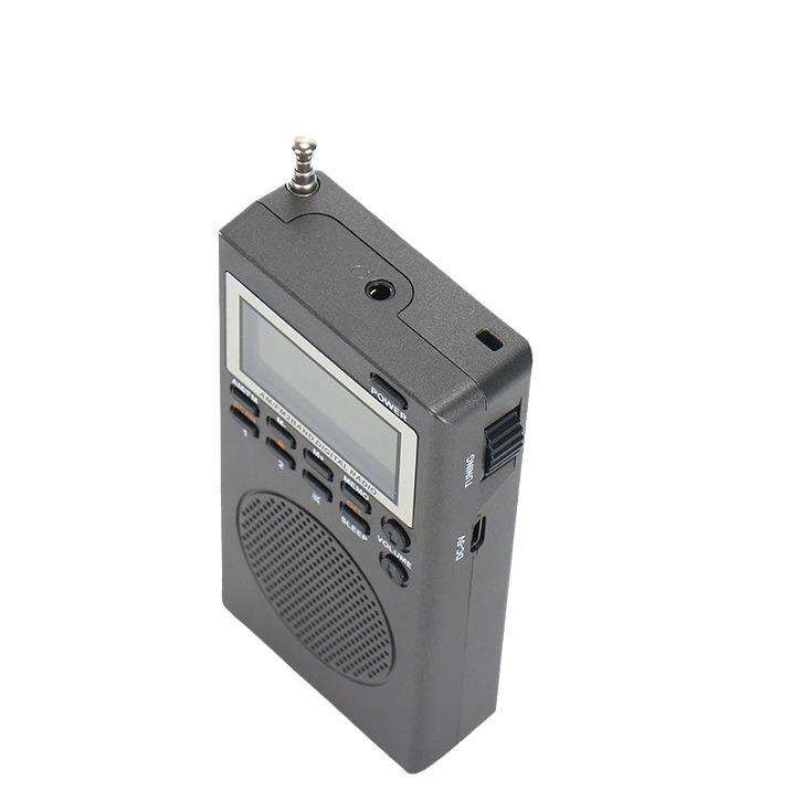 Radio numérique AM FM noire de poche avec écran LCD de 1,4 pouce, minuterie de veille, réveil, format de poche, pour l'extérieur et la maison