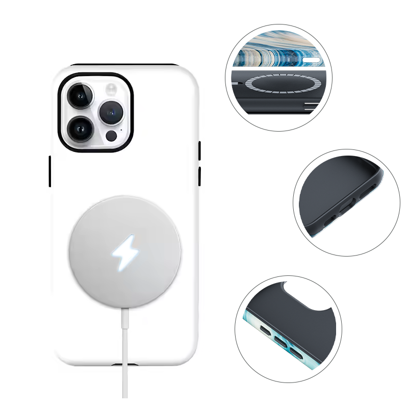 Coque de téléphone portable en TPU et PC à double aimant, vierge pour sublimation 3D, en gros pour usine, pour coques de téléphone personnalisées, e-commerce et boutiques en ligne