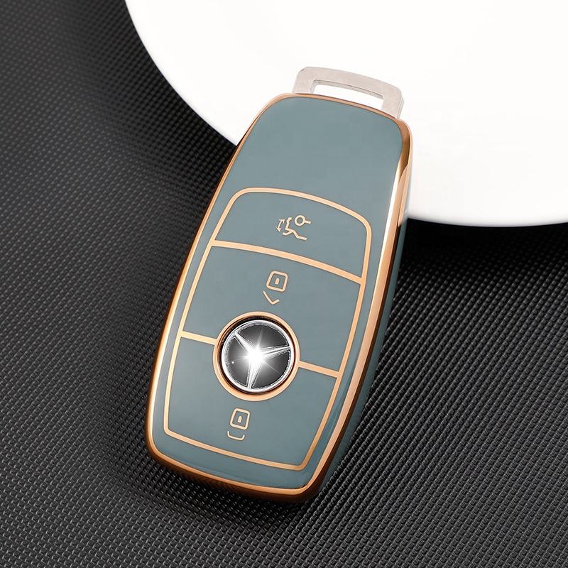 Étui de protection pour clé de voiture en TPU avec bord doré, en gros, pour accessoires intérieurs de voiture de classe C/E/S
