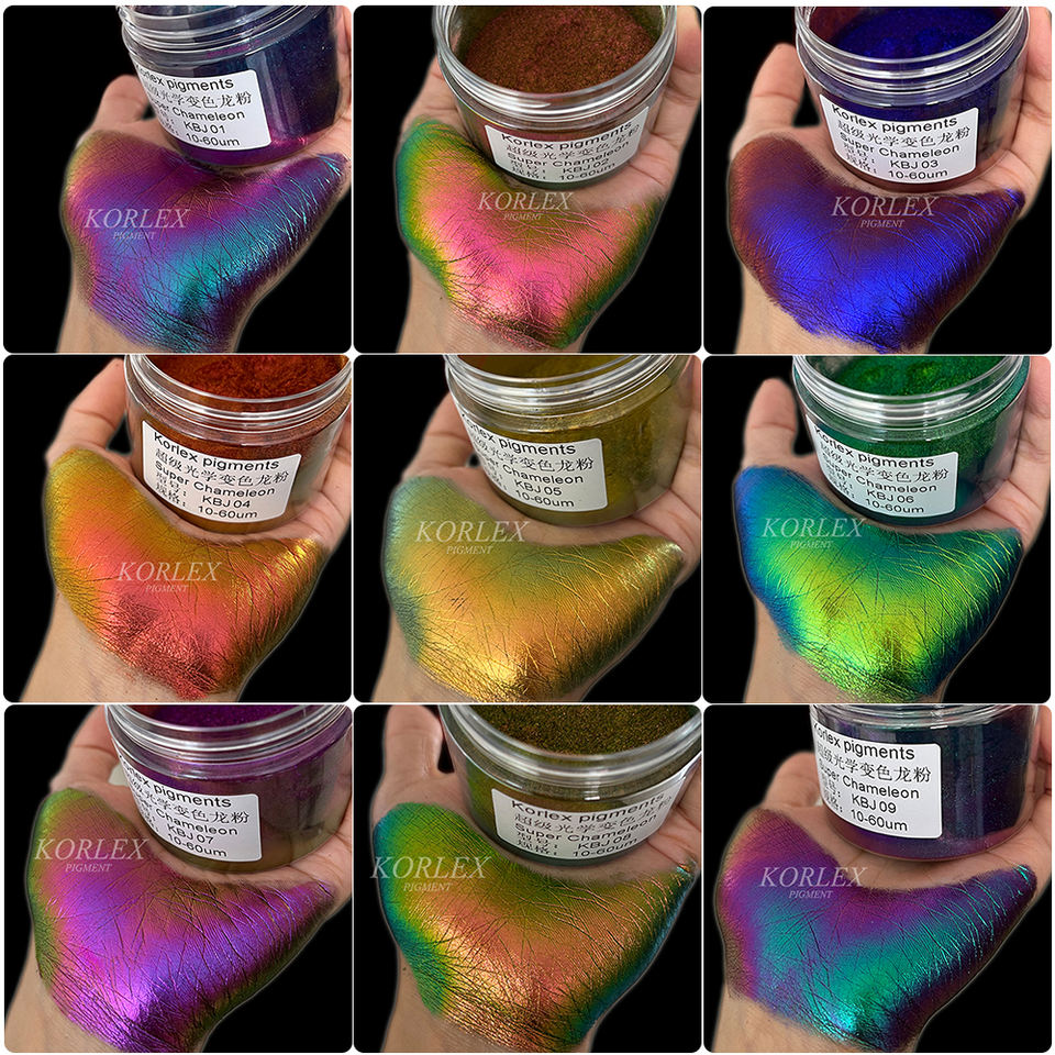 Poudre de peinture de revêtement en pigment super intense à changement de couleur en vrac d'usine, super chrome, ultra-shift, super caméléon, aurora, hypershift