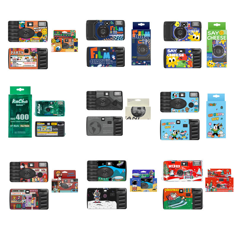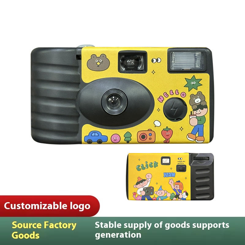 Appareil photo jetable personnalisé en gros d'usine, pellicule 12/18/27/35, objectif fixe 28 mm, appareil photo manuel miniature, utilisation unique, prise de vue unique avec flash